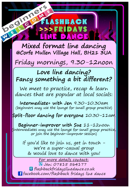 For up-to-date information about other local line dance classes & events visit the website: Line Dance Dorset