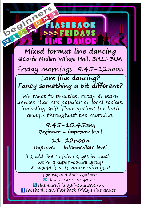 For up-to-date information about other local line dance classes & events visit the website: Line Dance Dorset